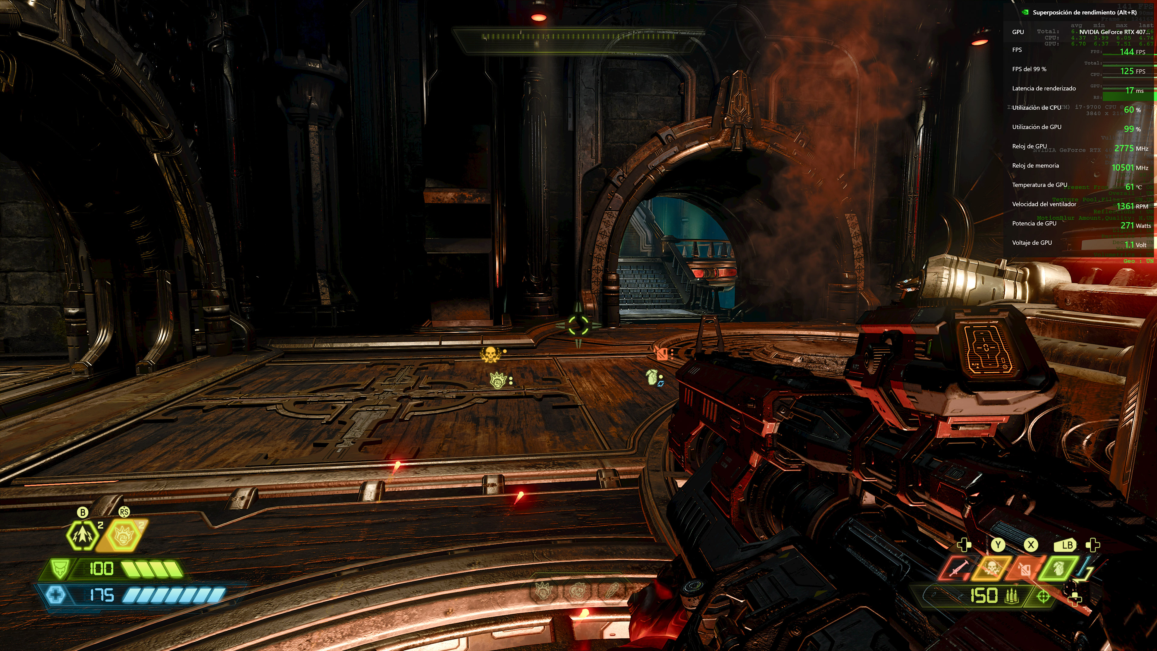 Pudimos correr Doom Eternal a 4K con los gráficos en ultrapesadilla (modo ultra), sin apoyo del DLSS, y aún así conseguir más de 140 FPS en la partida. Así que si tenemos un monitor de 240 hz, podremos pasar los 200 FPS si nos ayudamos con el DLSS.